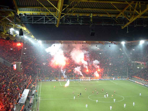 Galatasaray idaresi ve taraftarlarının ağır itirazlarına karşın maç Almanya’nın Dortmund kentine alındı. 2 Aralık 2003’te Westfalenstadion’da oynanan maçta sarı-kırmızılılar, deplasman sayılan lakin tribünlerin Türk bayraklarıyla donatıldığı atmosferde rakibini 2-0 devirmeyi başardı.